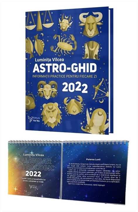 Comandă online cartea "Astro-ghid 2022. Informatii practice pentru fiecare zi" la 126,90 lei isbn 9786066394154 scrisă de Luminita Vilcea, tiparită la editura For You în anul 2021. Cartea poate fi livrată în circa 2 zile cu plata ramburs sau online cu cardul.