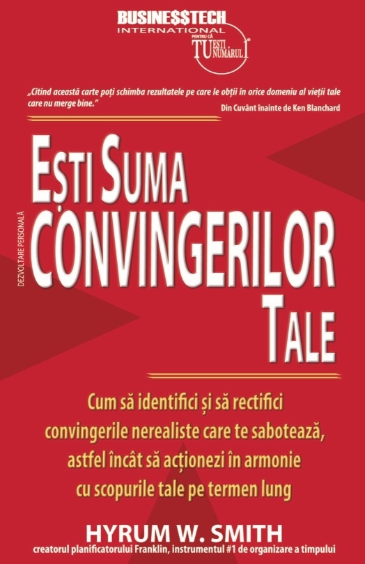 Comandă online cartea "Esti suma convingerilor tale - Cum sa identifici si sa rectifici convingerile nerealiste care te saboteaza, astfel incat sa actionezi in armonie cu scopurile tale pe termen lung" la 46,42 lei isbn 9786068709161 scrisă de Hyrum W. Smith, tiparită la editura BusinessTech în anul 2020. cu plata ramburs sau online cu cardul. Momentan titlul "Esti suma convingerilor tale - Cum sa identifici si sa rectifici convingerile nerealiste care te saboteaza, astfel incat sa actionezi in armonie cu scopurile tale pe termen lung" nu este disponibil însa vă puteți înscrie pentru a fi notificat în momenul reaprovizionarii.