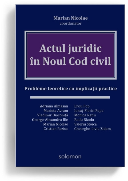 Comandă online cartea "Actul juridic in Noul Cod civil" la 103,51 lei isbn 9786068892719 scrisă de Marian Nicolae, tiparită la editura Solomon în anul 2020. cu plata ramburs sau online cu cardul. Momentan titlul "Actul juridic in Noul Cod civil" nu este disponibil însa vă puteți înscrie pentru a fi notificat în momenul reaprovizionarii.