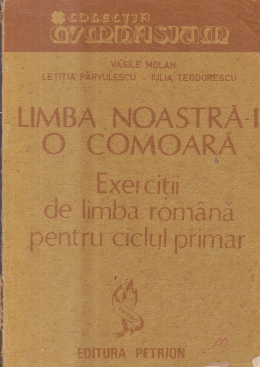 Comandă online cartea "Limba noastra-i o comoara - Exercitii de limba romana pentru ciclul primar" la 6,20 lei scrisă de VASILE MOLAN, tiparită la editura Petrion face parte din colecția Gymnasium în anul 1991. Livrare din stoc cu plata ramburs sau online cu cardul.