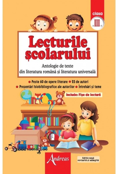 Comandă online cartea "Lecturile scolarului clasa a III-a. Antologie de texte din literatura romana si cea universala" la 19,00 lei isbn 9786067651218, tiparită la editura Andreas în anul 2020 cu un număr de 356 pagini. Cartea poate fi livrată în circa 2 zile cu plata ramburs sau online cu cardul.