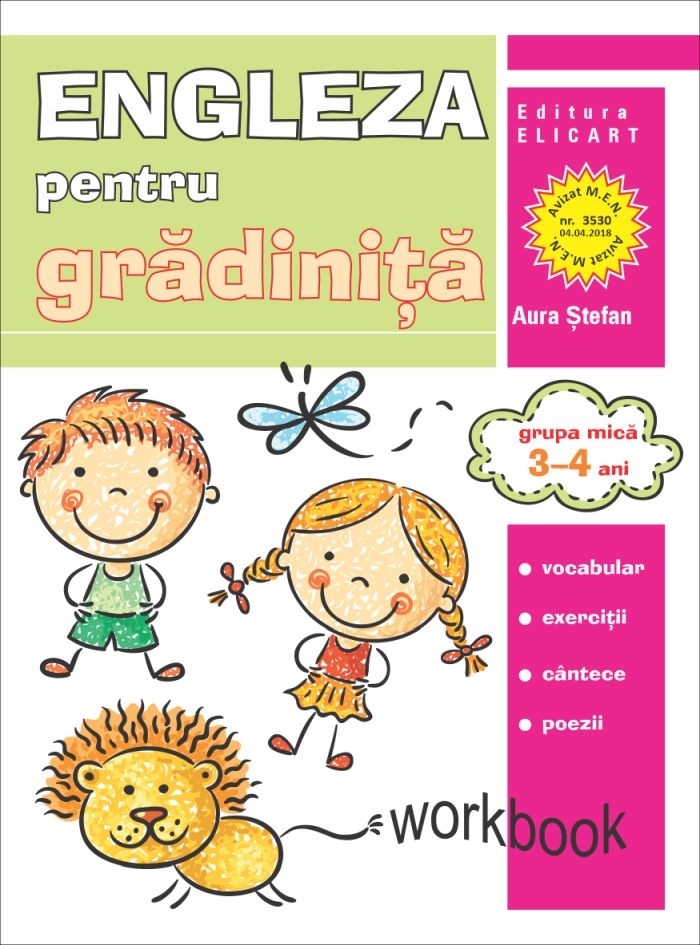 Comandă online cartea "Limba engleza pentru gradinita. Grupa mica 3-4 ani. Workbook" la 16,00 lei isbn 9786067681130 scrisă de Aura Stefan, tiparită la editura Elicart în anul 2019. Cartea poate fi livrată în circa 2 zile cu plata ramburs sau online cu cardul.