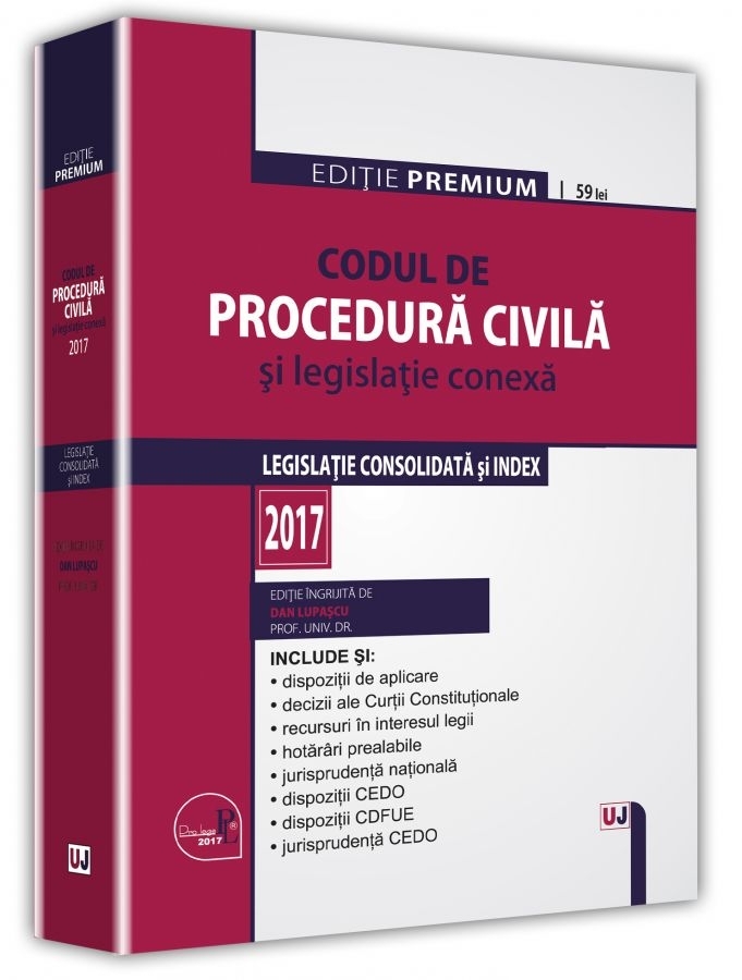 Comandă online cartea "Codul de procedura civila si legislatie conexa 2017. Editie Premium" la 62,40 lei isbn 9786063900587 scrisă de Dan Lupascu, tiparită la editura Universul Juridic în anul 2017. Cartea poate fi livrată în circa 2 zile cu plata ramburs sau online cu cardul.