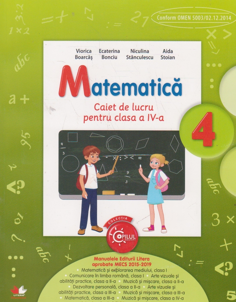 Comandă online cartea "Matematica. Caiet de lucru pentru clasa a IV-a" la 10,50 lei scrisă de Viorica Boarcas, tiparită la editura Litera în anul 2016 cu un număr de 160 pagini. cu plata ramburs sau online cu cardul. Momentan titlul "Matematica. Caiet de lucru pentru clasa a IV-a" nu este disponibil însa vă puteți înscrie pentru a fi notificat în momenul reaprovizionarii.