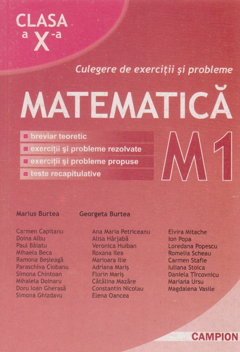 Comandă online cartea "Matematica M1. Clasa a X-a. Culegere de exercitii si probleme" la 15,90 lei scrisă de Marius Burtea , Georgeta Burtea, tiparită la editura Campion în anul 2009 cu un număr de 244 pagini. cu plata ramburs sau online cu cardul. Momentan titlul "Matematica M1. Clasa a X-a. Culegere de exercitii si probleme" nu este disponibil însa vă puteți înscrie pentru a fi notificat în momenul reaprovizionarii.