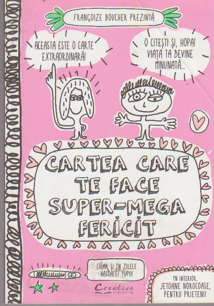 Comandă online cartea "Cartea care te Face Super-Mega Fericit" la 26,40 lei isbn 9786069376423 scrisă de Francoize Boucher, tiparită la editura Creative Publishing în anul 2014. cu plata ramburs sau online cu cardul. Momentan titlul "Cartea care te Face Super-Mega Fericit" nu este disponibil însa vă puteți înscrie pentru a fi notificat în momenul reaprovizionarii.
