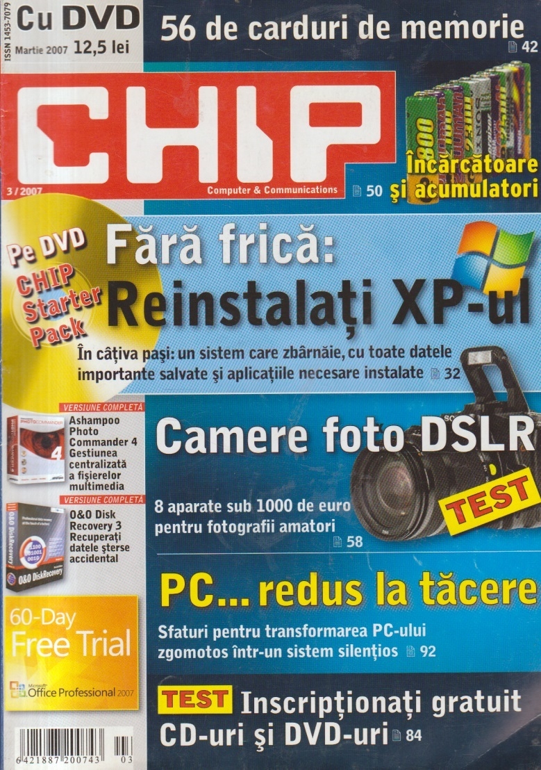 Comandă online cartea "Chip. Computer & Comunications, Nr. 3/Martie 2007" la 10,50 lei, tiparită la editura Revista CHIP face parte din colecția CHIP în anul 2007 cu un număr de 114 pagini. cu plata ramburs sau online cu cardul. Momentan titlul "Chip. Computer & Comunications, Nr. 3/Martie 2007" nu este disponibil însa vă puteți înscrie pentru a fi notificat în momenul reaprovizionarii.