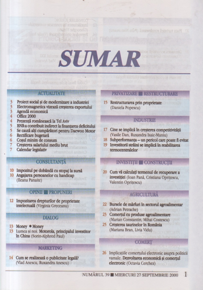 Comandă online cartea "Tribuna Economica, Nr. 39/2000" la 6,20 lei Cristian Gorie, tiparită la editura Tribuna Economica în anul 2000 cu un număr de 80 pagini. Livrare din stoc cu plata ramburs sau online cu cardul.