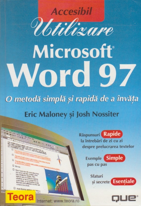Comandă online cartea "Utilizare Microsoft Word 97 - O metoda simpla si rapida de a invata" la 26,40 lei isbn 9736016501 scrisă de Eric Maloney , Josh Nossiter Aurelia Nicoleta Merezeanu , Daniel Marian Merezeanu, tiparită la editura Teora. Livrare din stoc cu plata ramburs sau online cu cardul.