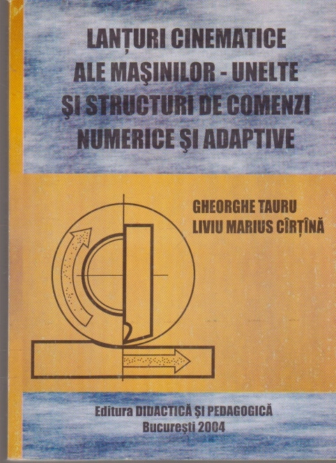Comandă online cartea "Lanturi Cinematice ale Masinilor - Unelte si structuri de comenzi numerice si adaptive" la 30,70 lei isbn 9733025879 scrisă de Gheorghe Tauru , Liviu Marius Cirtina, tiparită la editura Didactica si Pedagogica în anul 2004. cu plata ramburs sau online cu cardul. Momentan titlul "Lanturi Cinematice ale Masinilor - Unelte si structuri de comenzi numerice si adaptive" nu este disponibil însa vă puteți înscrie pentru a fi notificat în momenul reaprovizionarii.