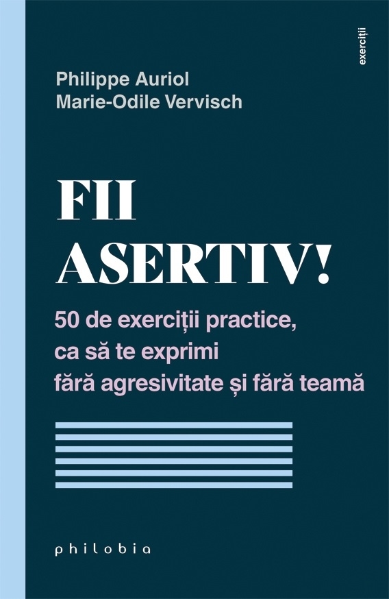 Comandă online Fii asertiv! : 50 de exerciţii practice, ca să te exprimi fără agresivitate şi fără teamă la 35,90 lei isbn 9786069707715 scrisă de Philippe Auriol , Marie-Odile Vervisch , Corina Iordanescu, tiparită la editura Philobia în anul 2022. Cartea poate fi livrată în circa 2 zile cu plata ramburs sau online cu cardul.