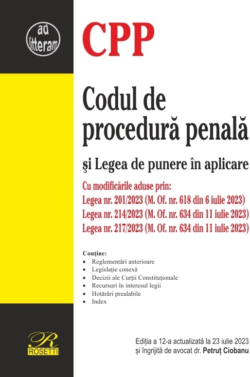 Comandă online cartea "Codul de procedură penală şi Legea de punere în aplicare : Reglementări anterioare, Legislaţie conexă, Decizii ale Curţii Constituţionale, Recursuri în interesul legii, Hotărâri prealabile, Index" la 43,01 lei isbn 9786060251286 scrisă de Petrut Ciobanu, tiparită la editura Rosetti în anul 2023. cu plata ramburs sau online cu cardul. Momentan titlul "Codul de procedură penală şi Legea de punere în aplicare : Reglementări anterioare, Legislaţie conexă, Decizii ale Curţii Constituţionale, Recursuri în interesul legii, Hotărâri prealabile, Index" nu este disponibil însa vă puteți înscrie pentru a fi notificat în momenul reaprovizionarii.