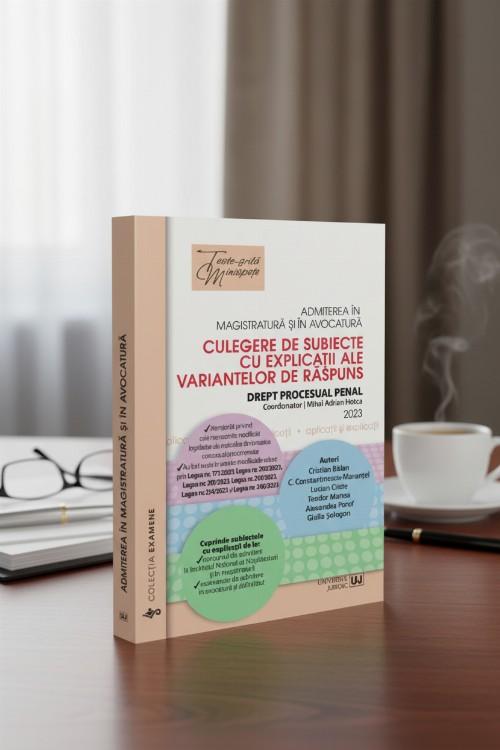 Comandă online cartea "Admiterea în magistratură şi în avocatură : culegere de subiecte cu explicaţii ale variantelor de răspuns,Drept procesual penal" la 85,43 lei isbn 9786063913044 scrisă de Mihai Adrian Hotca , Teodor Manea , ... , Cristian Bălan , Cătălin Constantinescu-Mărunţel , Lucian Criste , Giulia Sologon , Mihai Adrian Hotca (coord.), tiparită la editura Universul Juridic în anul 2023. Cartea poate fi livrată în circa 2 zile cu plata ramburs sau online cu cardul.