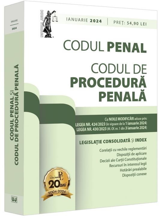 Comandă online cartea "Codul penal si Codul de procedura penala: ianuarie 2024. Editie tiparita pe hartie alba" la 63,80 lei isbn 9786063913242 scrisă de Dan Lupascu, tiparită la editura Universul Juridic în anul 2024. cu plata ramburs sau online cu cardul. Momentan titlul "Codul penal si Codul de procedura penala: ianuarie 2024. Editie tiparita pe hartie alba" nu este disponibil însa vă puteți înscrie pentru a fi notificat în momenul reaprovizionarii.