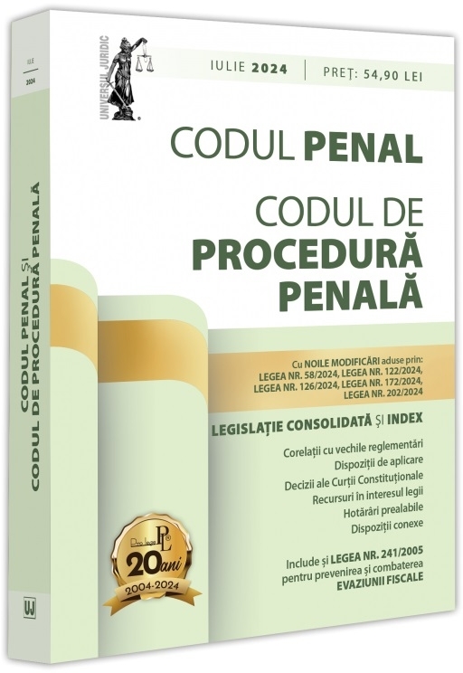 Comandă online cartea "Codul penal şi Codul de procedură penală" la 63,80 lei isbn 9786063914188 scrisă de Dan Lupascu, tiparită la editura Universul Juridic în anul 2024. cu plata ramburs sau online cu cardul. Momentan titlul "Codul penal şi Codul de procedură penală" nu este disponibil însa vă puteți înscrie pentru a fi notificat în momenul reaprovizionarii.
