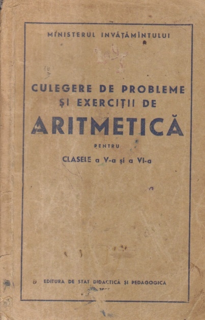 Comandă online cartea "Culegere de probleme si exercitii de aritmetica pentru clasele a V-a si a VI-a (Editie 1956)" la 20,10 lei, tiparită la editura Editura de Stat Didactica si Pedagogica în anul 1956 cu un număr de 406 pagini categorie Învățamânt - Educație, Manuale scolare, Matematica. cu plata ramburs sau online cu cardul. Momentan titlul "Culegere de probleme si exercitii de aritmetica pentru clasele a V-a si a VI-a (Editie 1956)" nu este disponibil însa vă puteți înscrie pentru a fi notificat în momenul reaprovizionarii.