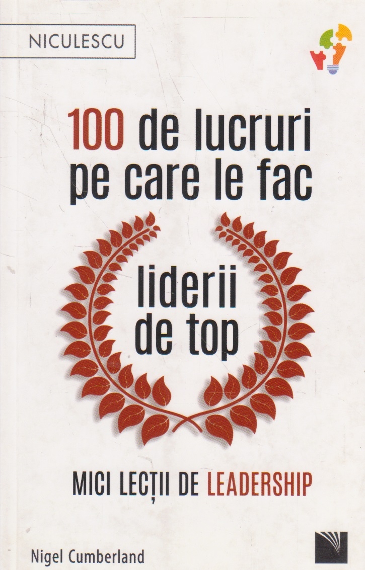 Comandă online cartea "100 de lucruri pe care le fac liderii de top. Mici lectii de leadership" la 20,10 lei scrisă de Nigel Cumberland, tiparită la editura Niculescu în anul 2021 cu un număr de 222 pagini. cu plata ramburs sau online cu cardul. Momentan titlul "100 de lucruri pe care le fac liderii de top. Mici lectii de leadership" nu este disponibil însa vă puteți înscrie pentru a fi notificat în momenul reaprovizionarii.