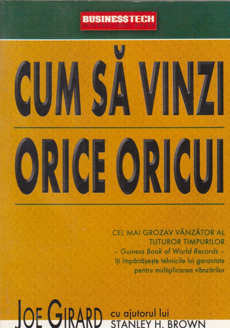 Comandă online cartea "Cum sa vinzi orice oricui" la 15,90 lei scrisă de Joe Girard, tiparită la editura Business Tech International cu un număr de 220 pagini categorie Marketing / Publicitate, Economie. cu plata ramburs sau online cu cardul. Momentan titlul "Cum sa vinzi orice oricui" nu este disponibil însa vă puteți înscrie pentru a fi notificat în momenul reaprovizionarii.