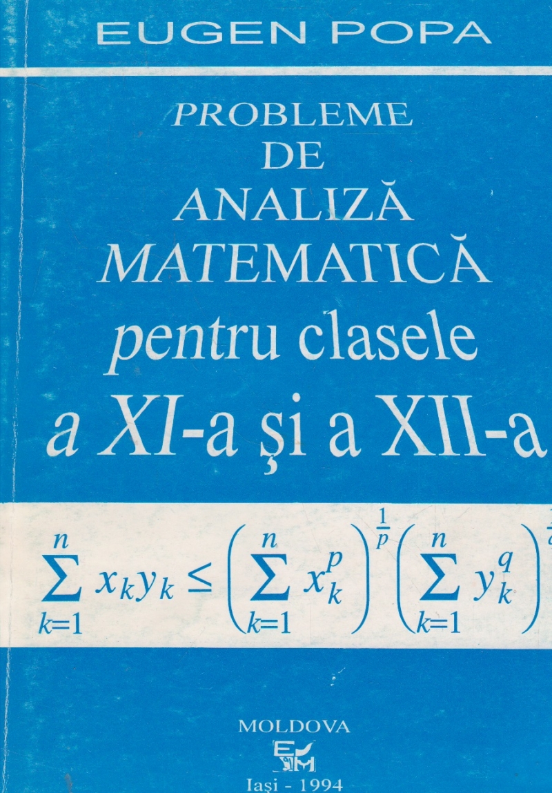 Comandă online cartea "Probleme de Analiza Matematica pentru clasele a XI-a si a XII-a" la 20,10 lei scrisă de Eugen Popa, tiparită la editura Moldova în anul 1994 cu un număr de 208 pagini. cu plata ramburs sau online cu cardul. Momentan titlul "Probleme de Analiza Matematica pentru clasele a XI-a si a XII-a" nu este disponibil însa vă puteți înscrie pentru a fi notificat în momenul reaprovizionarii.