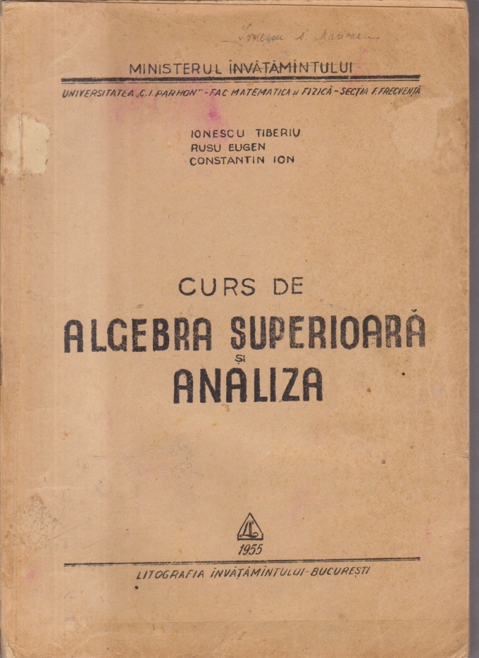 Comandă online cartea "Curs de algebra superioara si analiza (Editie 1955)" la 30,70 lei scrisă de Tiberiu Ionescu , Eugen Rusu, tiparită la editura Universitatea din Bucuresti face parte din colecția Facultatea de Matematica în anul 1955. cu plata ramburs sau online cu cardul. Momentan titlul "Curs de algebra superioara si analiza (Editie 1955)" nu este disponibil însa vă puteți înscrie pentru a fi notificat în momenul reaprovizionarii.