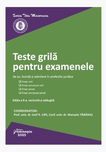 Comandă online cartea "Teste grila pentru examenele de an, licenta si admitere in profesiile juridice. Editia a 9-a" la 221,10 lei isbn 9786062727437 scrisă de coord.: prof. univ. dr. Iosif R. Urs , conf. univ. dr. Manuela Tăbăraş , Manuela Tabaras , Iosif R. Urs, tiparită la editura Hamangiu în anul 2025. Cartea poate fi livrată în circa 2 zile cu plata ramburs sau online cu cardul.