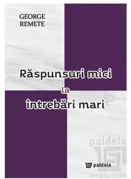 Comandă online cartea "Răspunsuri mici la întrebări mari : (eseuri)" la 41,80 lei isbn 9786067489972 scrisă de George Remete , Pr George Remete, tiparită la editura Paideia în anul 2025. Cartea poate fi livrată în circa 2 zile cu plata ramburs sau online cu cardul.