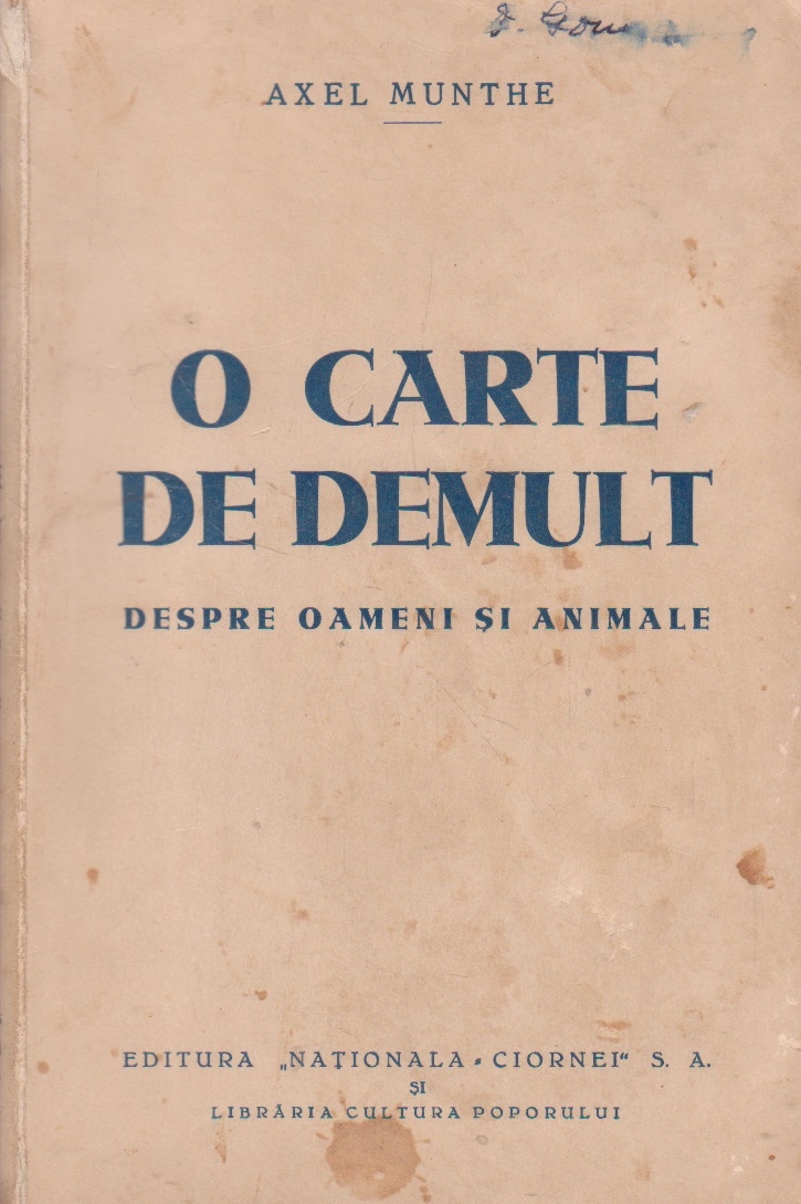 Comandă online cartea "O carte de neuitat" la 41,20 lei scrisă de Axel Munthe, tiparită la editura Nationala Ciornei cu un număr de 230 pagini categorie Roman strain, Beletristică și critică, Bibliofilie / Cărți rare. cu plata ramburs sau online cu cardul. Momentan titlul "O carte de neuitat" nu este disponibil însa vă puteți înscrie pentru a fi notificat în momenul reaprovizionarii.