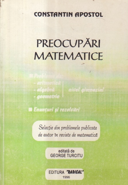 Comandă online cartea "Preocupari matematice (Apostol)" la 29,00 lei scrisă de Constantin Apostol, tiparită la editura Radical în anul 1996 cu un număr de 179 pagini. cu plata ramburs sau online cu cardul. Momentan titlul "Preocupari matematice (Apostol)" nu este disponibil însa vă puteți înscrie pentru a fi notificat în momenul reaprovizionarii.
