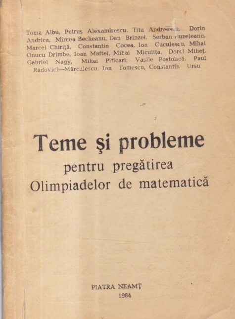 Comandă online cartea "Teme si probleme pentru pregatirea Olimpiadelor de matematica (Piatra Neamt, 1984)" la 25,00 lei Dan Branzei , Maria Uta, tiparită la editura H.P. în anul 1978 cu un număr de 204 pagini. Livrare din stoc cu plata ramburs sau online cu cardul.