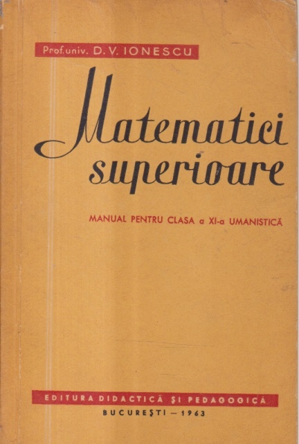 Comandă online cartea "Matematici superioare, Manual pentru clasa a XI-a umanistica" la 19,00 lei scrisă de D. V. Ionescu, tiparită la editura Didactica si Pedagogica face parte din colecția Clasa a XI-a în anul 1963. Livrare din stoc cu plata ramburs sau online cu cardul.
