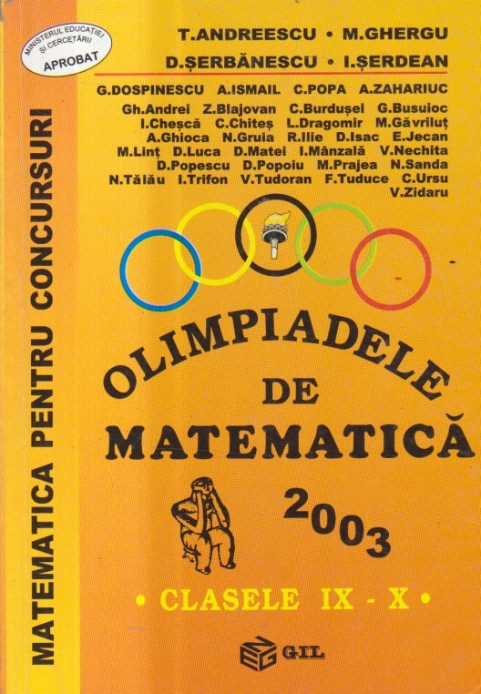 Comandă online cartea "Olimpiadele de matematica 2003 - Clasele IX-X" la 35,00 lei scrisă de Marius Ghergu , Titu Andreescu, tiparită la editura GIL face parte din colecția Matematica pentru concursuri în anul 2003. cu plata ramburs sau online cu cardul. Momentan titlul "Olimpiadele de matematica 2003 - Clasele IX-X" nu este disponibil însa vă puteți înscrie pentru a fi notificat în momenul reaprovizionarii.