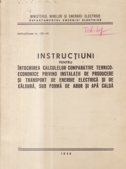 Comandă online cartea "Instructiuni pentru intocmirea calculelor comparative tehnico-economice privind instalatii de producere si transport de energie electrica si de caldura, sub forma de abur si apa calda" la 5,90 lei scrisă de Ministerul Minelor si Energiei Electrice în anul 1961 cu un număr de 40 pagini de anticariat (foarte buna). Livrare din stoc cu plata ramburs sau online cu cardul.