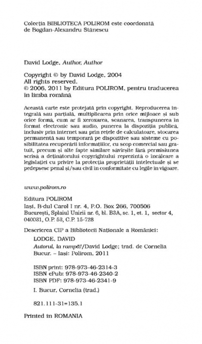 Seria de autor "David Lodge". cu plata ramburs sau online cu cardul. Momentan titlul "Autorul, la rampă!" nu este disponibil însa vă puteți înscrie pentru a fi notificat în momenul reaprovizionarii.">