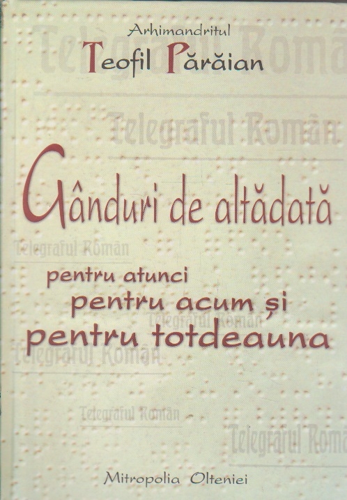 Comandă online cartea "Ganduri de altadata pentru atunci, pentru acum si pentru totdeauna" la 26,40 lei scrisă de Teofil Paraian, tiparită la editura Mitropolia Olteniei în anul 2006 cu un număr de 400 pagini. cu plata ramburs sau online cu cardul. Momentan titlul "Ganduri de altadata pentru atunci, pentru acum si pentru totdeauna" nu este disponibil însa vă puteți înscrie pentru a fi notificat în momenul reaprovizionarii.