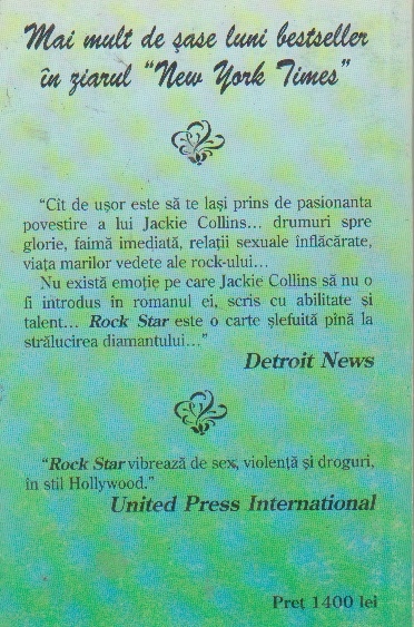 Comandă online cartea "Rock Star, Volumul al III-lea" la 10,50 lei scrisă de Jackie Collins, tiparită la editura Miron în anul 1994 cu un număr de 254 pagini. cu plata ramburs sau online cu cardul. Momentan titlul "Rock Star, Volumul al III-lea" nu este disponibil însa vă puteți înscrie pentru a fi notificat în momenul reaprovizionarii.