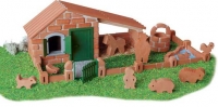 Copilul poate construi cu caramizi adevarate! Un produs ingenios, care contine caramizi si tigle adevarate,in forme variate, fabricate la scara mica. Pachetul mai contine mortar (obtinut din nisip si extras de porumb) si ustensile necesare pregatirii mortarului, accesorii si schite pentru diverse constructii.