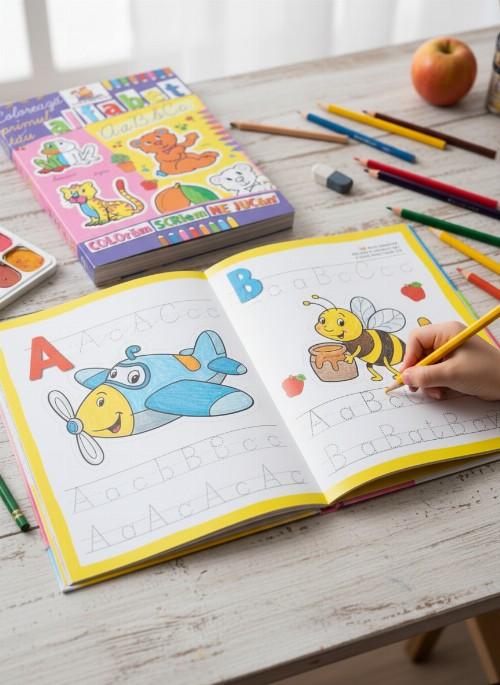 Carte de colorat educativa cu ajutorul careia cei mici vor invata alfabetul.