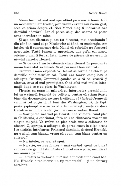 Seria de autor "Henry Miller". Cartea poate fi livrată în circa 5 zile cu plata ramburs sau online cu cardul.">