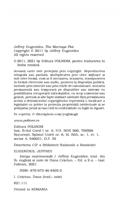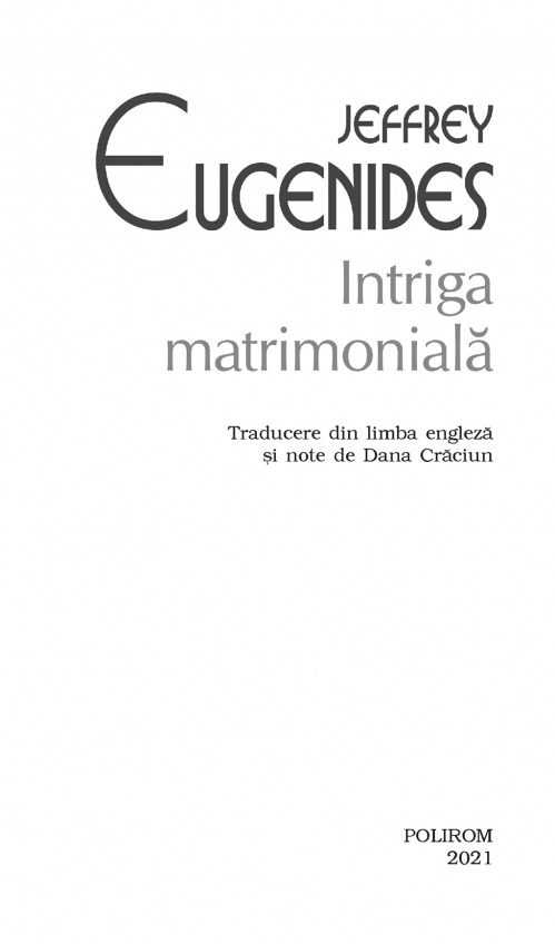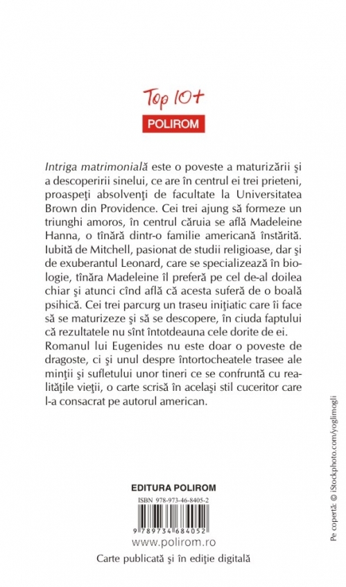 Comandă online cartea "Intriga matrimonială (ediție de buzunar)" la 31,70 lei isbn 9789734684052 scrisă de Jeffrey Eugenides, tiparită la editura Polirom face parte din colecția Top 10+. Cartea poate fi livrată în circa 5 zile cu plata ramburs sau online cu cardul.