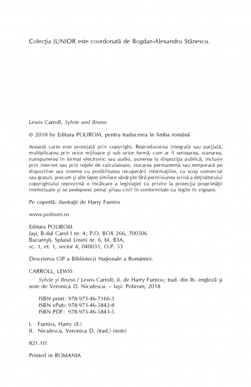 Comandă online cartea "Sylvie şi Bruno" la 36,90 lei isbn 9789734671663 scrisă de Lewis Carroll, tiparită la editura Polirom face parte din colecția JUNIOR. Cartea poate fi livrată în circa 2 zile cu plata ramburs sau online cu cardul.
