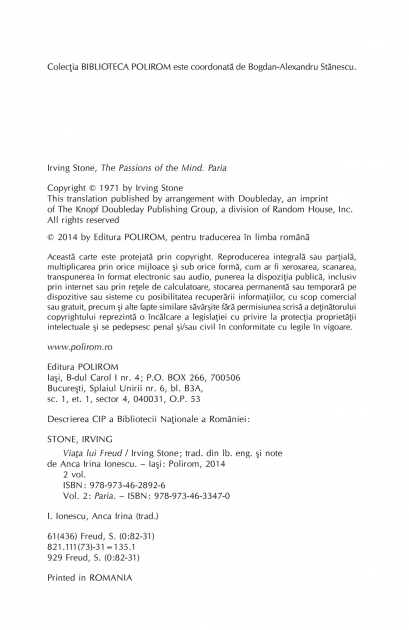 Comandă online cartea "Viața lui Freud. Vol. II: Paria" la 58,10 lei isbn 9789734633470 scrisă de Irving Stone, tiparită la editura Polirom face parte din colecția BIBLIOTECA POLIROM -> Esential. Cartea poate fi livrată în circa 5 zile cu plata ramburs sau online cu cardul.