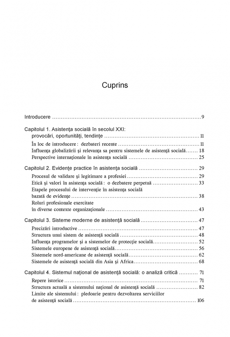 Cu un conținut profund comprehensiv, Asistența socială. Compendiu de teorie, istorie și practică este un material de tip manual universitar. Cartea are ca punct de plecare fundamentele asistenței sociale și prezintă aspectele importante ale istoriei și teoriei din acest domeniu, dar totodată analizează din punct de vedere practic intervențiile, devenind astfel un instrument esențial în formarea asistentului social. Concentrându-se pe identificarea și rezolvarea problemelor sociale, volumul se adresează atât studenților și practicienilor din domeniu, cât și publicului interesat de evoluția sistemului de asistență socială de la nivel național sau internațional.