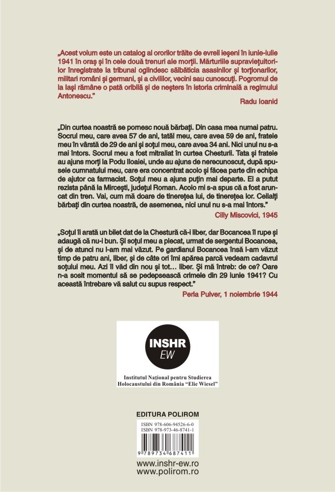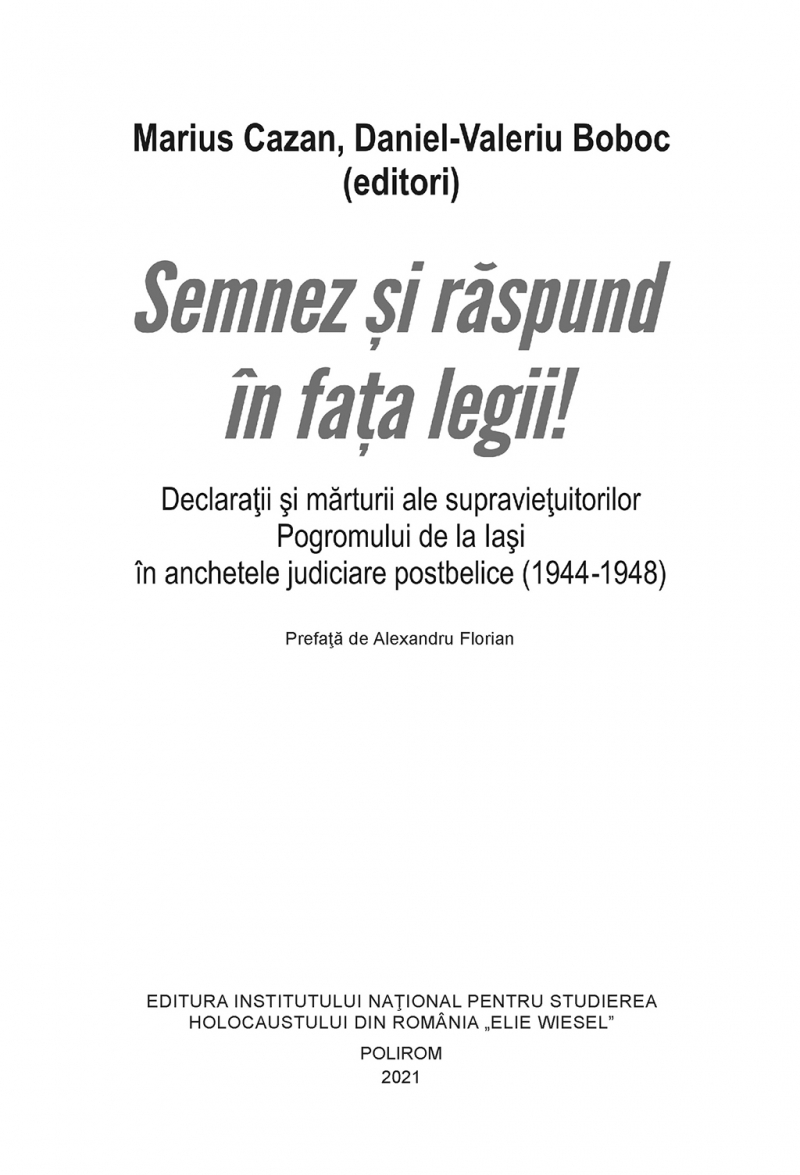 Semnez si raspund in fata legii! Declaratii si marturii ale supravietuitorilor Pogromului de la Iasi in anchet
