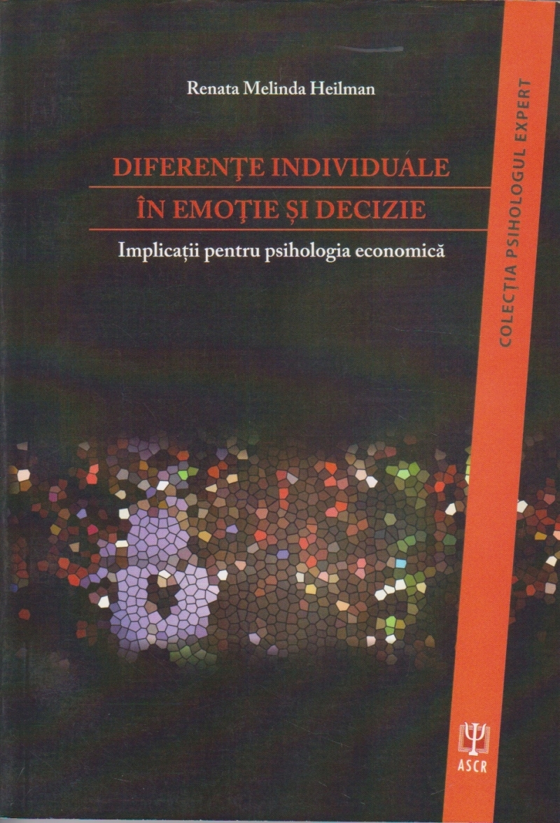 Comandă online cartea "Diferente individuale in emotie si decizie. Implicatii pentru psihologia economica" la 37,18 lei isbn 9786068244884 scrisă de Renata Melinda Heilman, tiparită la editura Asociatia de Stiinte Cognitive din Romania ASCR în anul 2015. Cartea poate fi livrată în circa 2 zile cu plata ramburs sau online cu cardul.