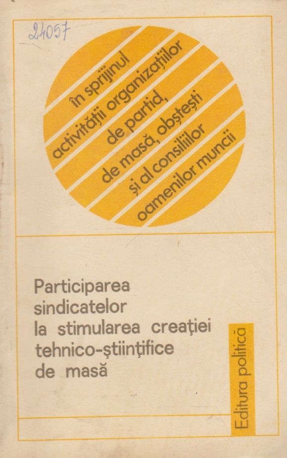 Comandă online cartea "Participarea Sindicatelor la Stimularea Creatiei Tehnico-Stiintifice de Masa" la 6,20 lei scrisă de Uniunea Generala a Sindicatelor din Romania Teofil Busecan, tiparită la editura Politica face parte din colecția In sprijinul activitatii organizatiilor de partid, de masa, obstesti si al consiliilor oamenilor muncii. Livrare din stoc cu plata ramburs sau online cu cardul.