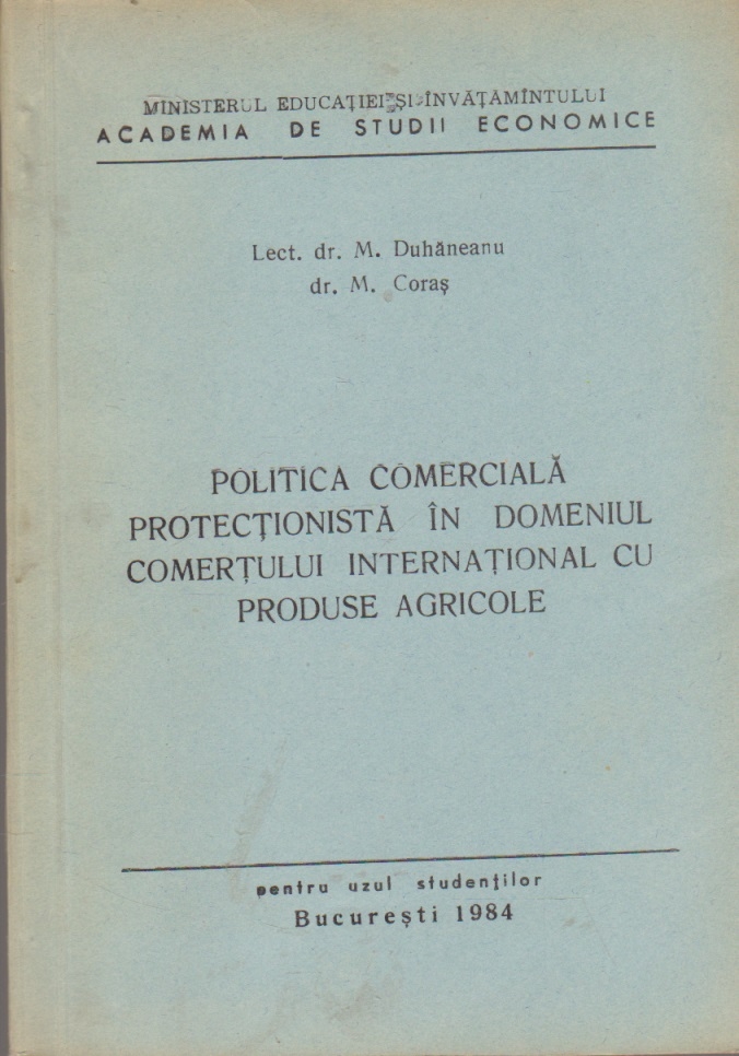 Comandă online cartea "Politica Comerciala Protectionista in Domeniul Comertului International cu Produse Agricole" la 15,90 lei scrisă de M. Duhaneanu , M. Coras, tiparită la editura Academia de Studii Economice în anul 1983 cu un număr de 118 pagini. Livrare din stoc cu plata ramburs sau online cu cardul.