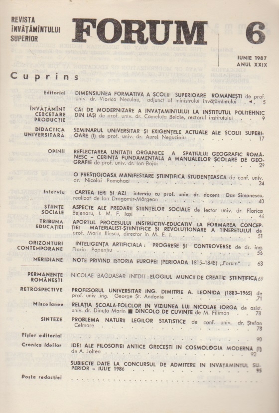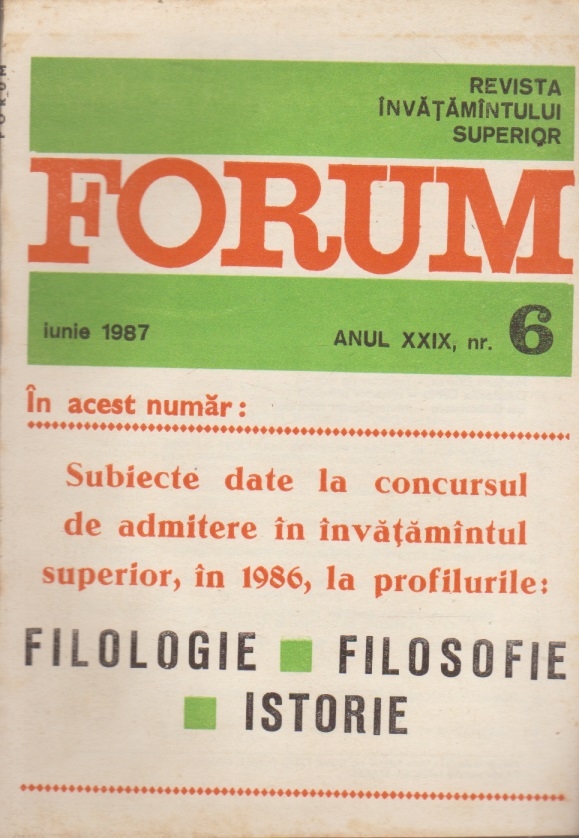 Comandă online cartea "Forum, Nr. 6/1987" la 10,50 lei Aurel Joltea, tiparită la editura Ministerul Invatamantului face parte din colecția Forum în anul 1987. Livrare din stoc cu plata ramburs sau online cu cardul.