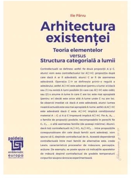 Comandă online cartea "Arhitectura existenţei : teoria elementelor versus structura categorială a lumii" la 155,21 lei isbn 9786067488661 scrisă de Ilie Parvu, tiparită la editura Paideia în anul 2024. Cartea poate fi livrată în circa 10 zile cu plata ramburs sau online cu cardul.
