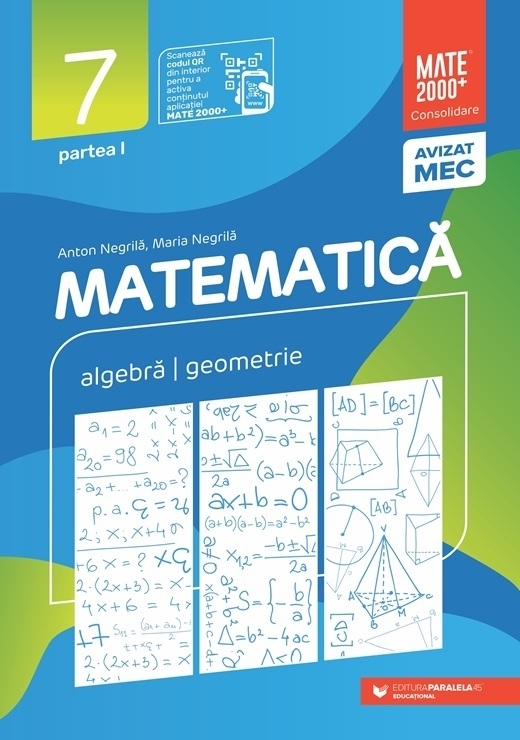 Comandă online cartea "Matematica. Aritmetica, algebra, geometrie. Clasa a VII-a. Consolidare. Partea I (Editia a XIV-a, revizuita, anul scolar 2025-2026)" la 38,00 lei isbn 9789734742936 scrisă de Anton Negrila , Maria Negrila, tiparită la editura Paralela 45 în anul 2025. Cartea poate fi livrată în circa 2 zile cu plata ramburs sau online cu cardul.