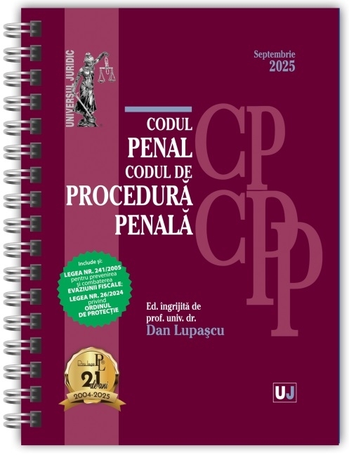 Comandă online cartea "Codul penal şi Codul de procedură penală : septembrie 2025" la 89,90 lei isbn 9786063917806 scrisă de ed. îngrij. de prof. univ. dr. Dan Lupaşcu , Dan Lupascu, tiparită la editura Universul Juridic în anul 2025. Cartea poate fi livrată în circa 2 zile cu plata ramburs sau online cu cardul.